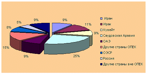 запасов нефти по странам и группам стран мира ( % ).(рис.1)