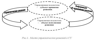 По своей сути решения являются связующим звеном между управляющей и управляемой подсистемами. Если в организации не принимаются никакие решения, то СУ не может функционировать. Это обстоятельство подчеркивает определяющую роль управленческого решения в системе управления.