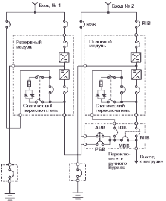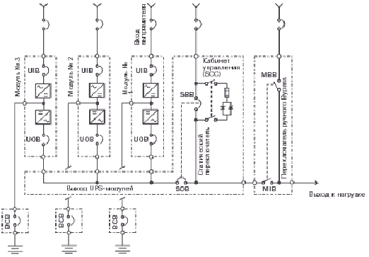 ручного Bypass; SBB - статический переключатель; UIB - входной размыкатель