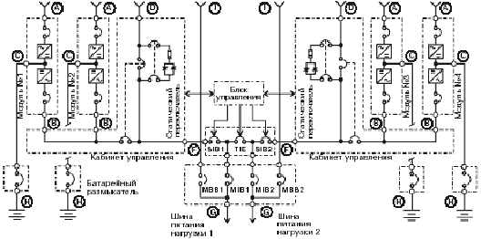батарейный размыкатель; MBB - переключатель ручного Bypass; MIB - размыкатель