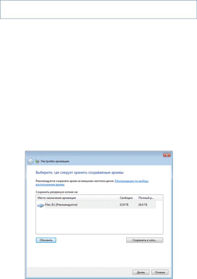 Примечание. Windows 7 не поддерживает архивацию на USB |