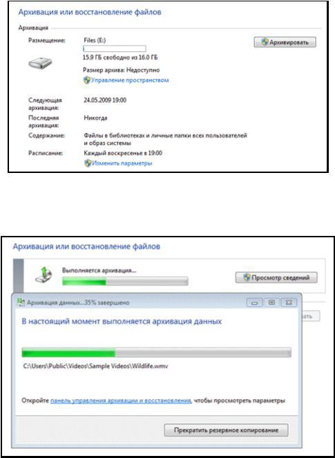 параметров архивации вы возвращаетесь в главное окно элемента панели управления.