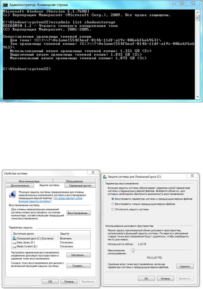 Эта команда выведет список всех имеющихся копий с указанием их размера.С помощью vssadmin можно также изменить размер, который система сможет выделить для теневых копий.
