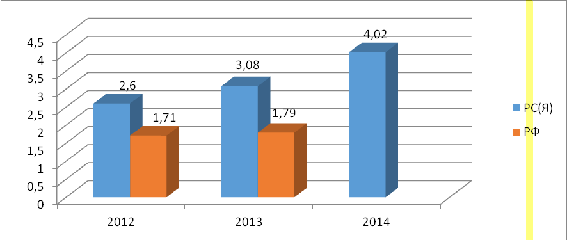 4,02 (РФ в 2013 году - 1,79). В 2013 аналогичный показатель в республике