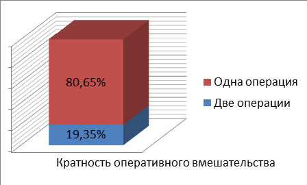 выполнено у 25 человек(80,65%), двухэтапное - у 6 человек(19,35%).