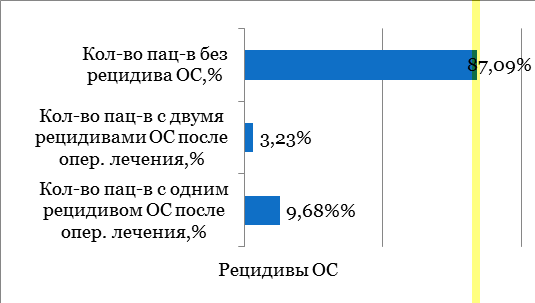 рецидивом, 1 пациент(3,23%) с 2-мя рецидивами.