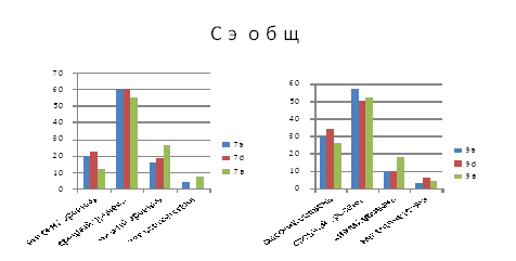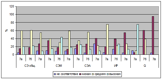 По этому показателю она сильно превосходит сверстников, приближаясь к фоновым значениям десятиклассников.Класс 7в существенно отстает в этом отношении от классов 7а и 7б (СЭА соответственно 0,42; 0,51 и 0,27)
