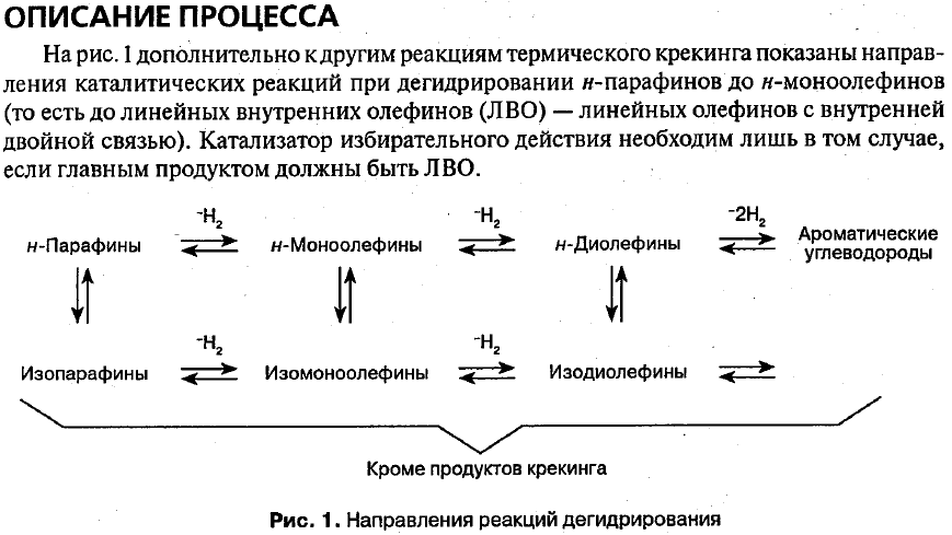 Параметры процесса: температура 540 – 550 оС, атмосферное давление, алюмо-хромовые катализаторы.