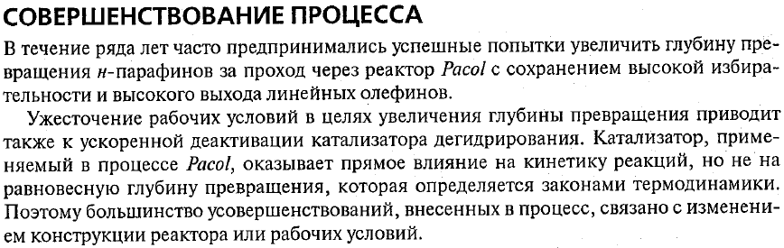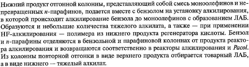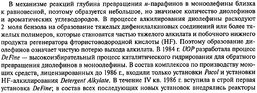 Заключительную стадию разделения С4- или С5-фракций нельзя осуществить простой ректификацией из-за близости температур кипения компонентов смеси. Для этого используют метод экстрактивной дистилляции с водным ацетоном, фурфуролом, ацетонитрилом, N-метилпирролидоном. Особенно эффективны два последних растворителя, в присутствии которых относительная летучесть парафинов значительно выше, чем оле- финов и диенов, и парафины можно отделить в виде головного погона и возвратить их на дегидрирование. Затем от растворителя отгоняют бутены и перерабатывают их совместно с фракцией С4 второй стадии дегидрирования. Принципы и схема экстрактивной дистилляции были рассмотрены в главе 1.