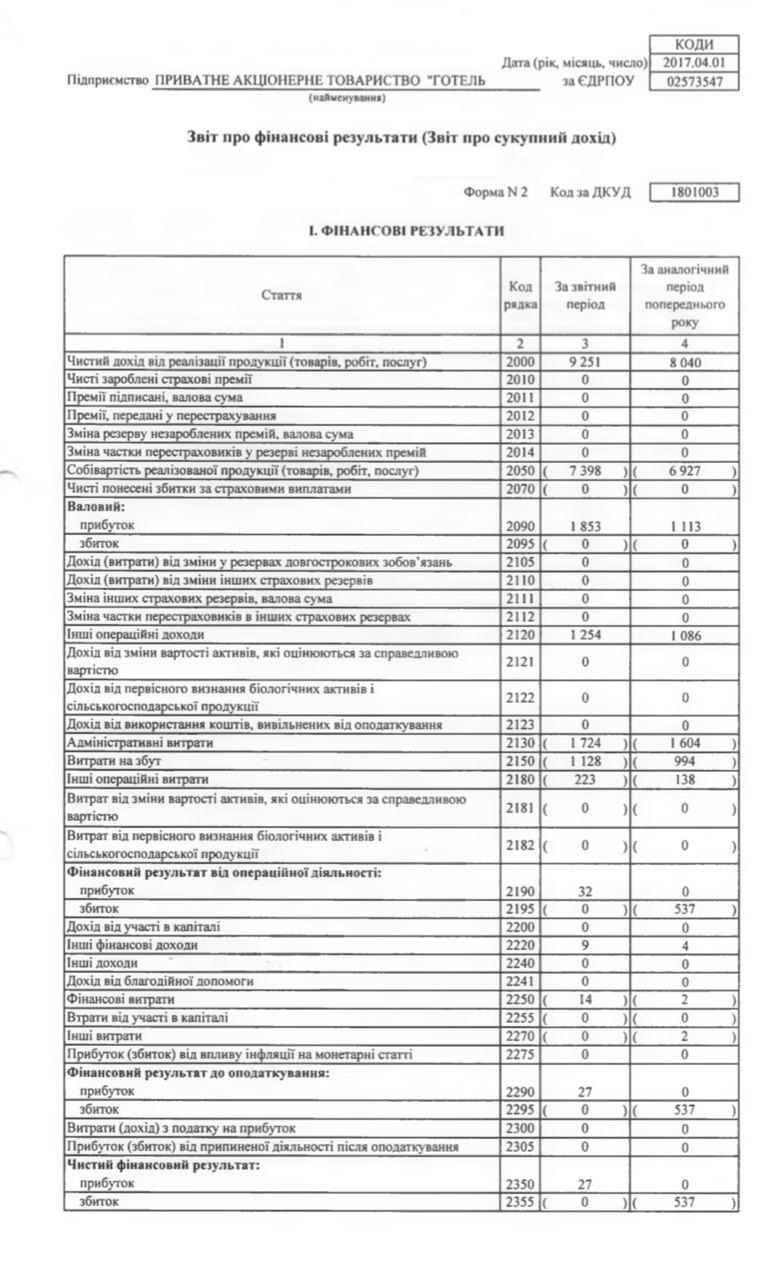 П - Чистий фінансовий результат: прибуток (збиток), грн.