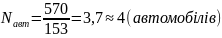 Далі був проведений розрахунок кількості транспортних засобів. Кількість автомобілів становить 4 авто.