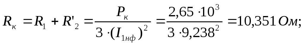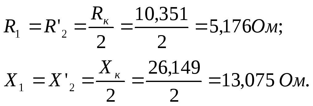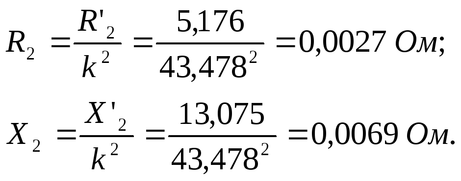 Реальные величины активных и реактивных сопротивлений первичной и вторичной обмоток трансформатора:
