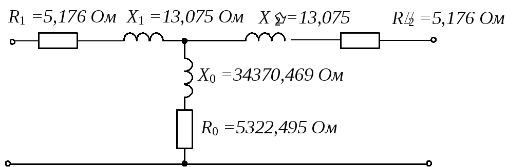 рассчитать и изобразить Т-образную схему замещения одной фазы.