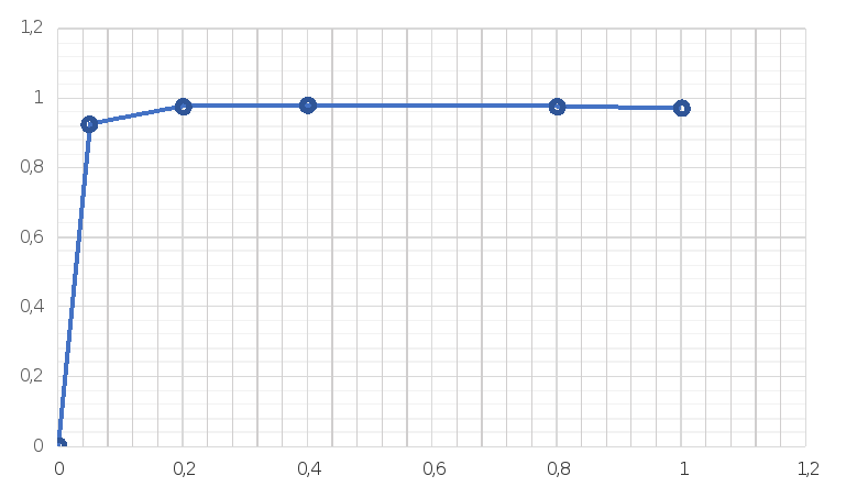 При коэффициенте нагрузки β = 0,05; 0,2; 0,4; 0,8; 1; 1,2: