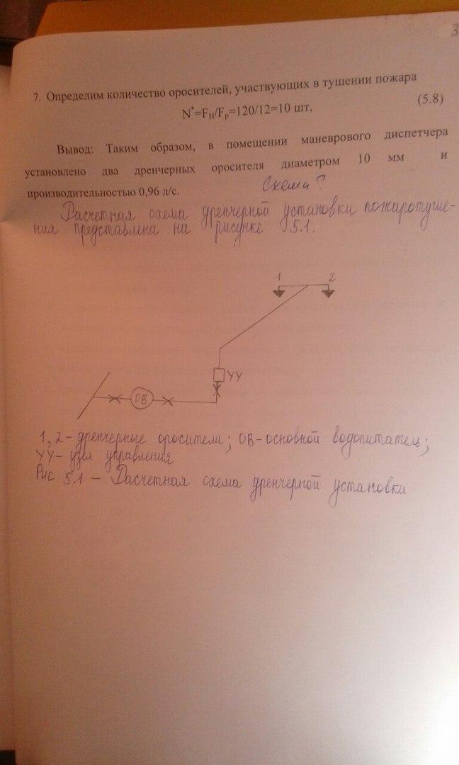 Вывод: Таким образом, в помещении маневрового диспетчера установлено два дренчерных оросителя диаметром 10 мм и производительностью 0,96 л/с.