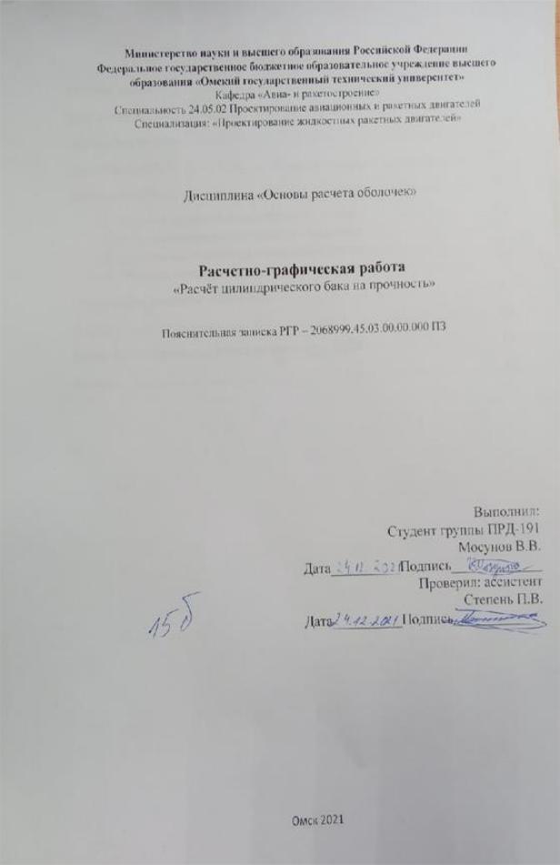 Высота цилиндрической оболочки – Нц =16,6 мм; Радиус бака – R=105 мм;