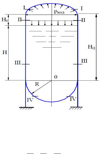 2)участок цилиндрической оболочки над зеркалом жидкости – II;