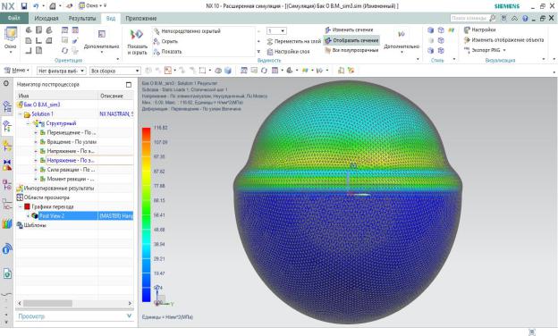 Рис 11. Проверка бака на прочность из лабораторной работы № 5 методом КЭ: