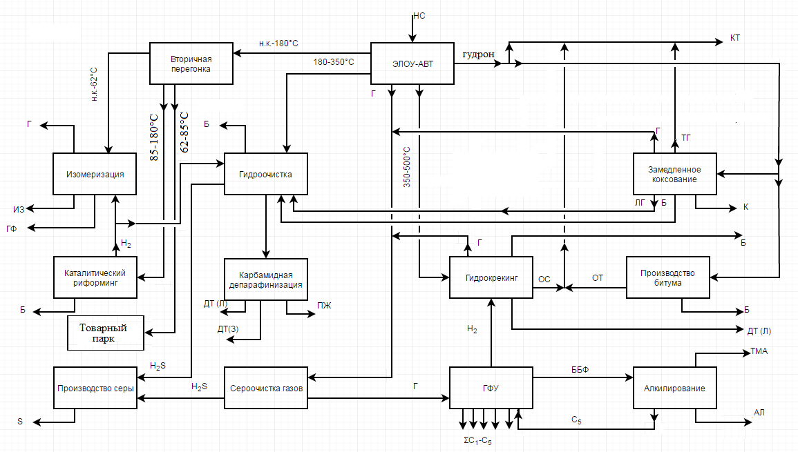 Рис. 1. Поточная схема НПЗ 3