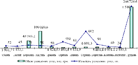 Рис.2.8. Динаміка угод з купівлі-продажу фінансових інструментів, укладених на УФБ