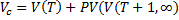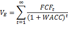 Более детальное рассмотрение будущего денежного потока также приводит к изменению формулы. Общий поток делится на поток, который формируется за счет текущей деятельности компании (в это время не реализуются новые инвестиционные проекты) и поток, который будет формироваться в результате реализации потенциальных проектов. Соответственно, стоимость компании будет состоять из стоимости, полученной в результате текущей деятельности (на момент расчета), и стоимости, полученной при реализации потенциальных инвестиционных проектов.