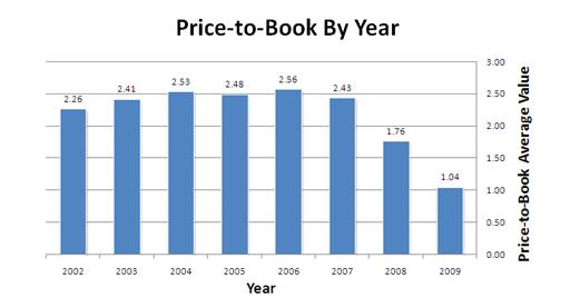 Коэффициент price-to- book value, 2002 - 2008 гг.