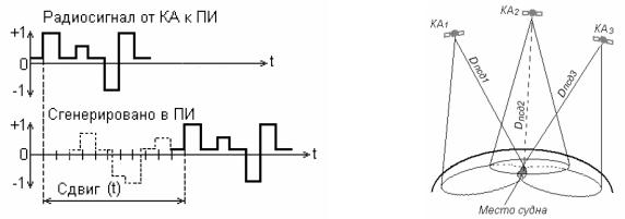 Временной сдвиг между опорными кодами определяет величину временного интервала, который в свою очередь характеризует псевдодальность