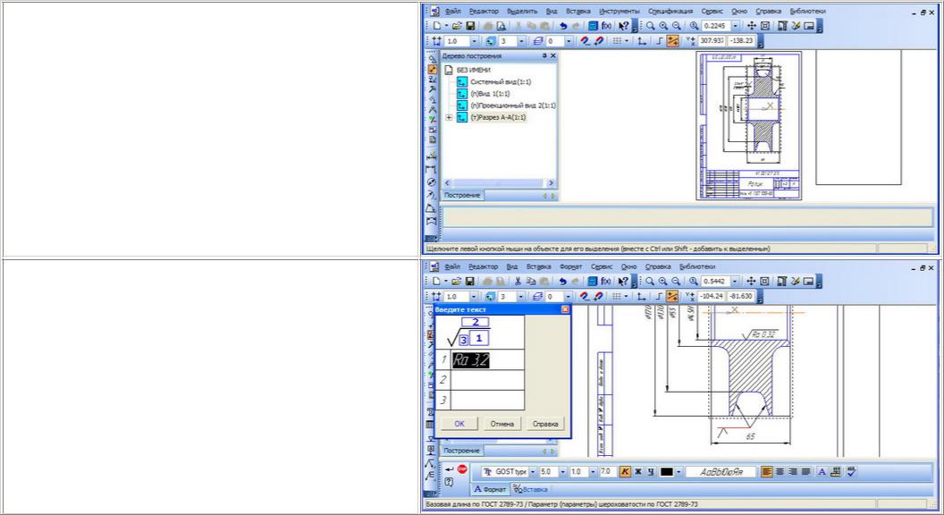 Задаем значение шероховатости поверхностей, используя кнопку "Шероховатость" инструментальной панели "Обозначения", в соответствии со значениями, предложенными на примере оформления чертежа ролика.