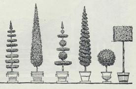деревьев и кустарников очертаний птиц, животных, геометрических фигур (рисунок