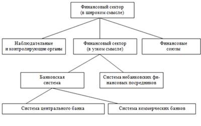 Финансовый сектор включает в себя банковскую систему, в которую входят центральный банк, банки второго уровня, а также небанковские финансовые организации.