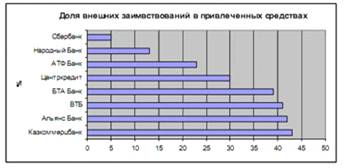 Рисунок 6. Доля внешних заимствований в привлеченных средствах банков Республики Казахстан в 2007 г.