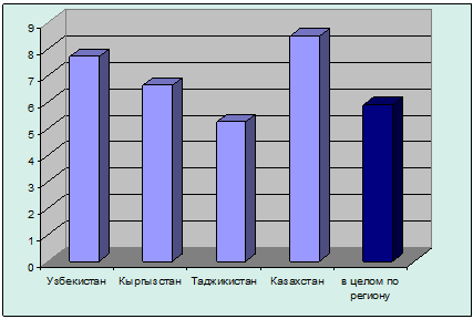 Кыргызстан и Таджикистан считаются наиболее бедными странами в регионе: по последним данным, за чертой бедности в каждой из стран находится около 50% населения. Большое негативное влияние в республиках оказывает системный кризис, характеризующийся глубоким спадом во всех отраслях экономики. В этих странах проблема спада сектора экономики усугубляется низким ростом валового продукта (ВВП), высоким темпом инфляций, 24,5 и 20,4%, соответственно. При этом более 90% всей продовольственной пшеницы и муки, а также около 40% нефтепродуктов Таджикистан завозит из Казахстана.