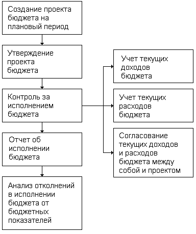 Контроль за исполнением бюджета строится на основе бюджетного учета, который является составной частью хозяйственного и управленческого учета и включает в себя учет исполнения бюджетов в федеральном законодательстве, в финансовых и налоговых органах и учет исполнения смет доходов и расходов бюджетных учреждений.