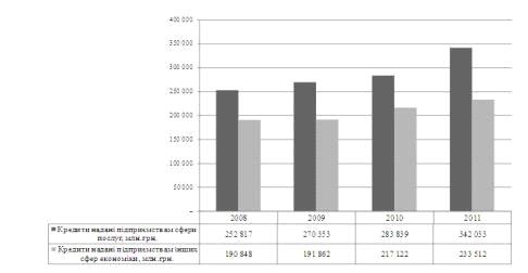 Тому такі показники засвідчують позитивний аспект в розвитку національної економіки і вказує на те, що незважаючи на економічні проблеми та складність кредитування підприємств сфери послуг, банківські установи при кредитуванні надають перевагу сфері послуг поміж інших сфер економіки через її більшу стабільність та життєздатність.
