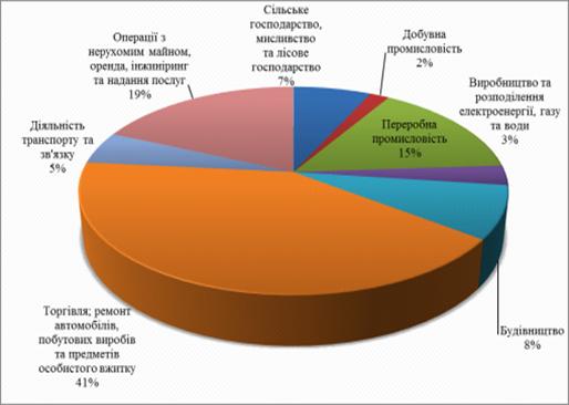 Також дуже важливою є інформація, щодо галузей в які поступили кредити. За цією інформацією можна виявити політику держави та галузі економіки, які найбільш швидко розвиваються. Деталізовану структуру кредитів не фінансовим корпораціям за видами економічної діяльності подано на рис. 2.8.