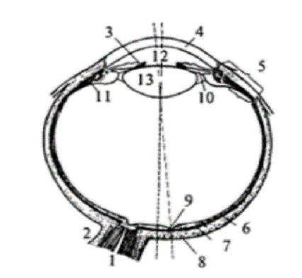 Рис. 1.2 Строение глаза человека: 1 - зрительный