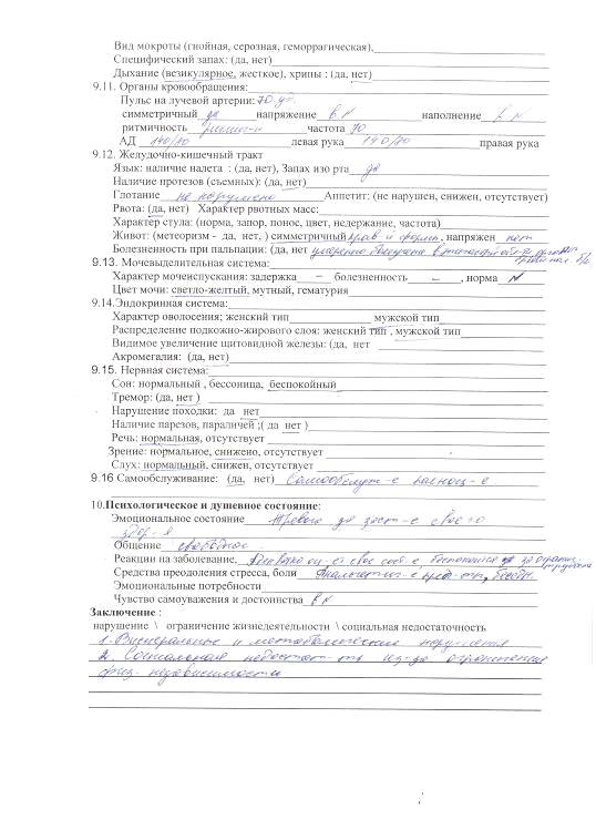 Вывод: Предложенные методы реабилитации разработаны в соответствии с особенностями течения заболевания на разных этапах и адаптированы к ним, что помогло эффективно бороться с болезнью. Следовательно, пациент Х после оперативного вмешательства был направлен в стационар, где после прохождения реабилитации, получил возможность проходить лечение в домашних условиях, а далее в санаторно-курортном учреждении. Результатом правильно разработанной программы реабилитации стало полное восстановление здоровья пациента Х.