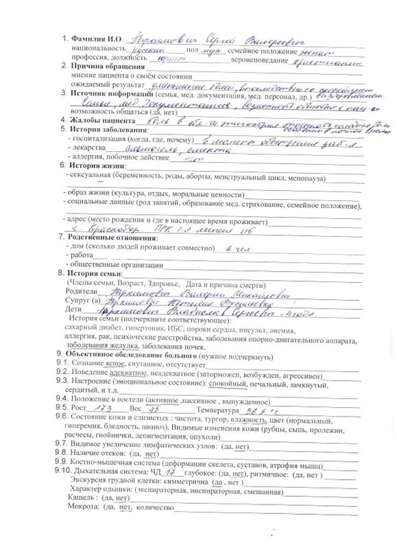 Анкеты реабилитации