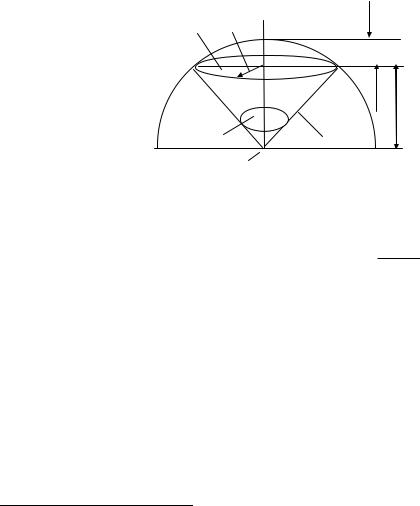 20 Телесный угол – отношение площади, вырезаемой телесным углом на поверхности шара, к квадрату радиуса этого шара. Часть шара, отсекаемая от него какойнибудь плоскостью, называется шаровым сегментом. Кривая поверхность шарового сегмента S равна произведению его высоты h на окружность большого круга шара: S = 2 R h (рис. О.4).