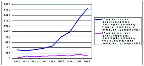 Рис. 1 Динамика взаимных инвестиций России и Украины