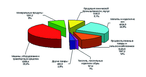По данным Росстат в 2008 г. внешнеторговый оборот Российской Федерации с Украиной составил 39,8 млрд. долларов США, увеличившись на 33,7% по сравнению с 2007 годом (таб. 1). Экспорт России вырос на 43,4% - до 23551,4 млн. долларов США (главным образом, за счет увеличения поставок машин и транспортных средств, черных металлов, продукции химической промышленности). Импорт с Украины в 2008 году увеличился на 21,8%, составив 16235,2 млн. долларов США.