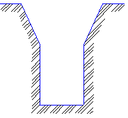 сложный ломаный поперечный профиль траншеи: в нижней части ко дну примыкают