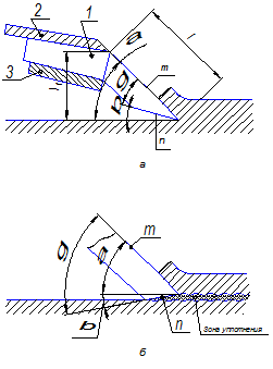 На основании опытных данных было установлено, что в средней части прорези удельное сопротивление грунта в 2-4 раза больше, чем в ее боковых частях. Это указывает на то, что режущему инструменту следует придавать форму, при которой области лобовых сопротивлений были бы наименьшими. При этом можно добиться снижения энергоемкости процесса разрушения грунта за счет уменьшения ширины прорези b и увеличения толщины стружки h (см. рис. 2.7).