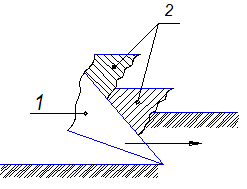 образования элементной стружки: 1 - режущий клин; 2 - элемент стружки.