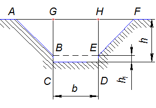 Поперечное сечение прорези в результате проходки режущего клина имеет сложную форму (рис. 2.7), обусловленную следующими процессами, протекающими в грунте. Перемещаясь, клин разрезает грунт по поверхности CD и уплотняет его с одновременным образованием боковых прорезей BC и DE. При достижении частицами основания уровня BE в окрестностях точек В и Е касательные напряжения достигают предельных значений, в результате чего происходит сдвиг грунта по поверхностям АВ и ЕF.
