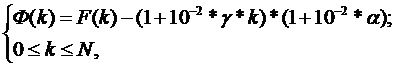 Ф(k) - відносна величина щомісячного платежу лізингоотримувача у k-тий місяць після початку виплат [1 < k < N, Ф(k) > 0].