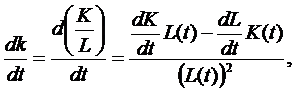 середньої продуктивності праці x(t) = X (t) / L(t);