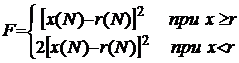 відображає сумарні втрати виробника та споживачів продукції від розбіжності попиту і пропозиції, коли різниця x(n) - r(n) = 0, причому при x(n) < r(n) ці втрати більше, ніж при x(n) > r(n), тому простої будівельників обходяться дорожче.