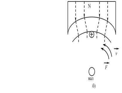 знак «+», а до щітки «в» «-», то в обмотці якоря з’явиться струм. В результаті