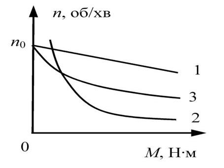 . Механічна характеристика двигуна постійного струму - залежність швидкості обертання n вала якоря від корисного моменту навантаження M на валу за постійних напруги U та опору кола збудження Rз: n = f (M) при U = const та Rз = const.